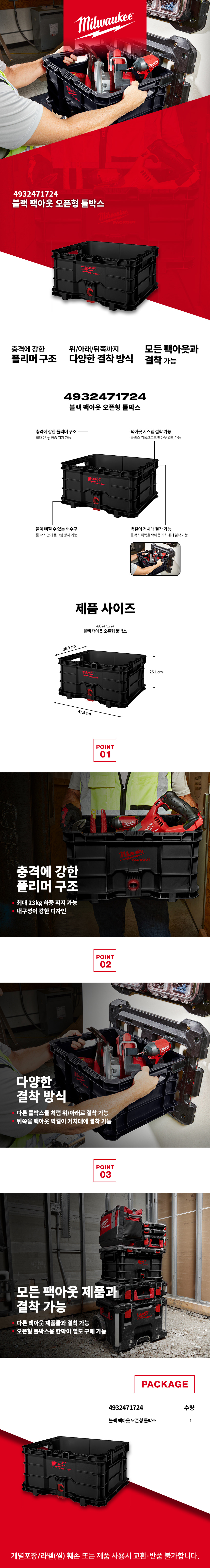 밀워키 블랙 팩아웃 서랍장 4932471724 공구함 정리함 부품함 공구박스 케이스