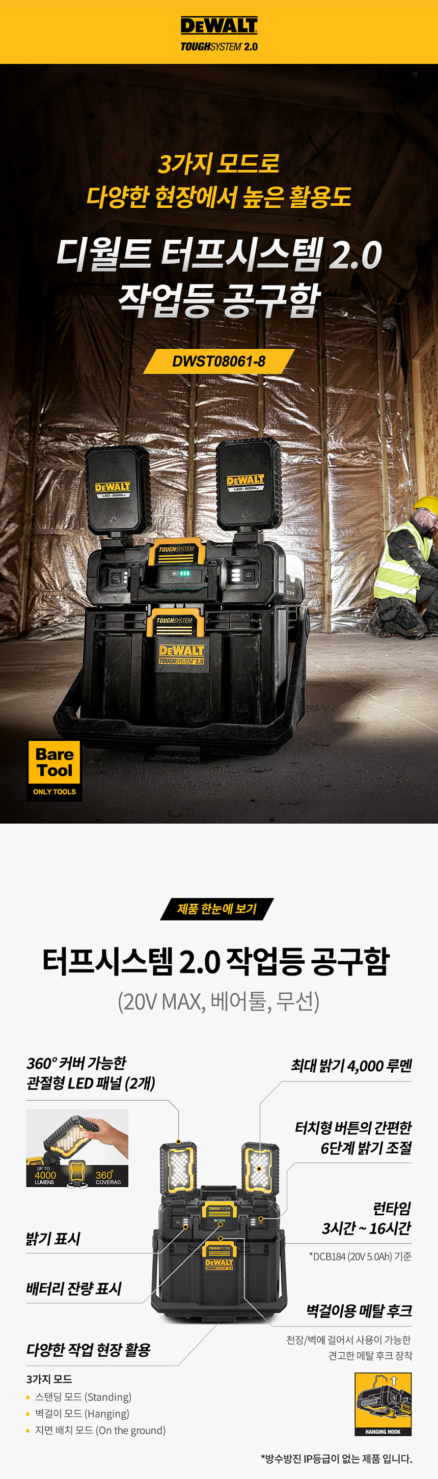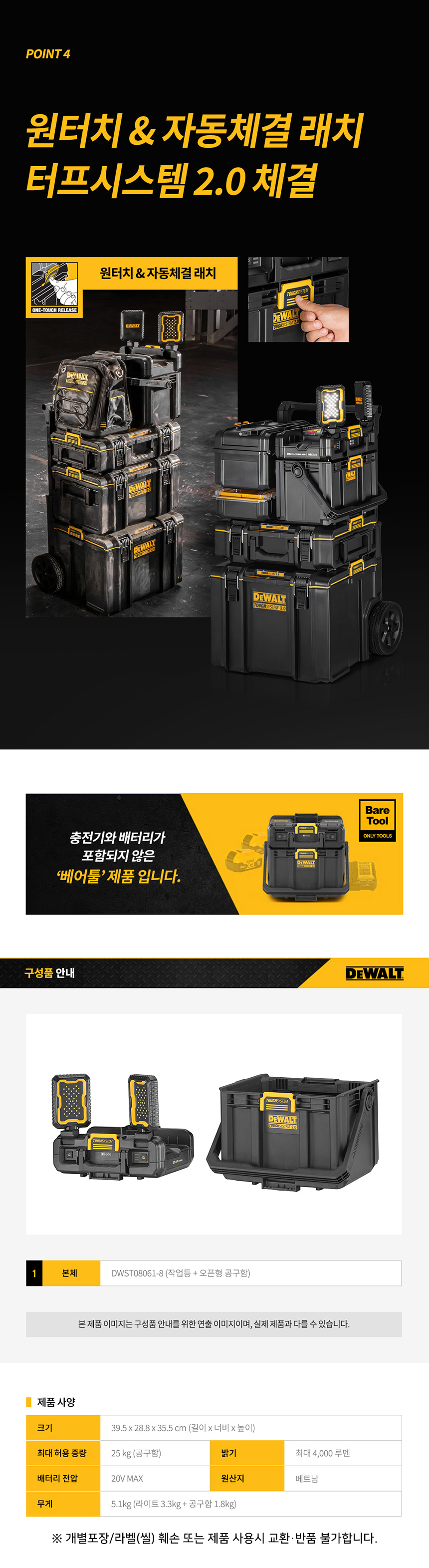 디월트 20V MAX 터프시스템 2.0 작업등 공구함 베어툴 DWST08061 공구 보관함 케이스 무선 랜턴