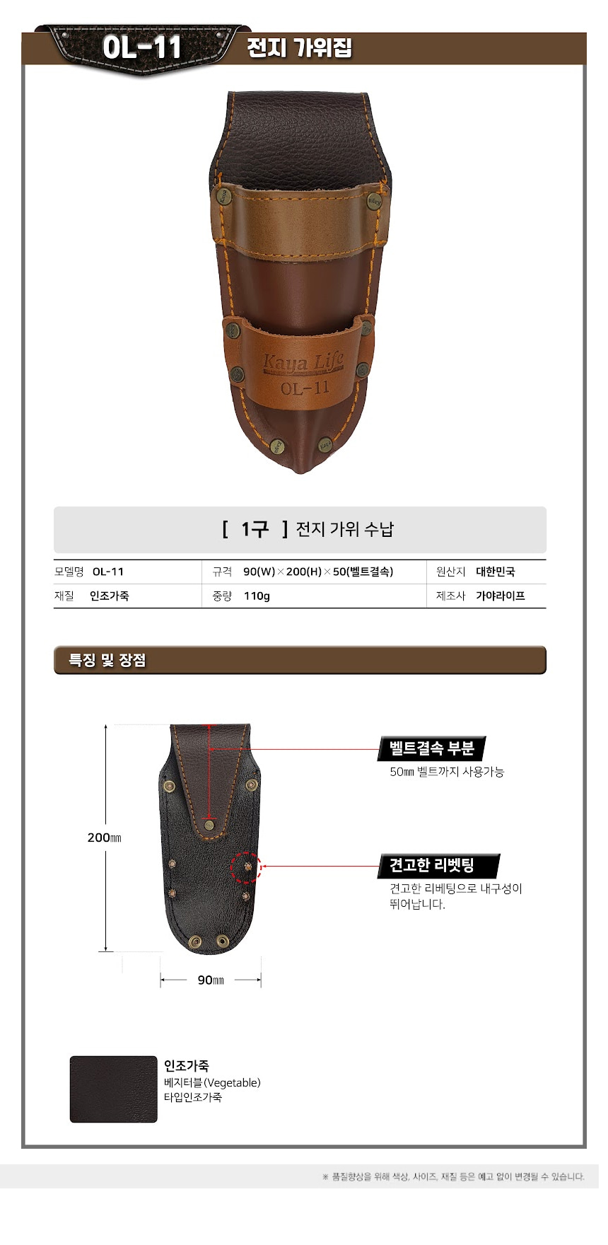 가야라이프 전지 가위집 OL-11 1구 공구 파우치 작업 벨트 수공구 수납 가방 공구집