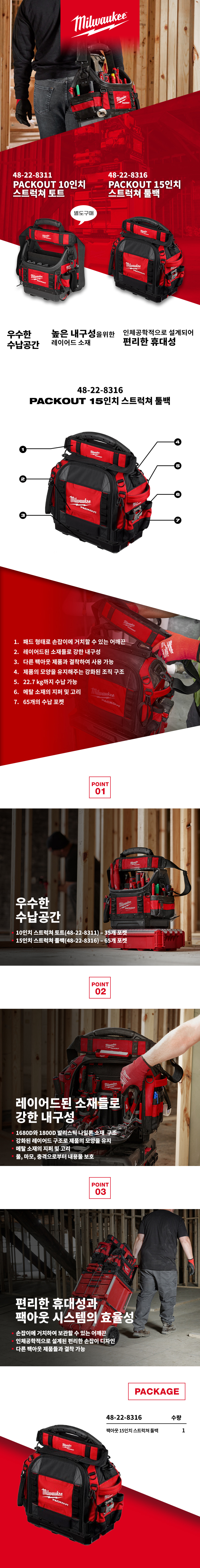 밀워키 팩아웃 15인치 스트럭쳐 툴백 48-22-8316 공구백 공구가방