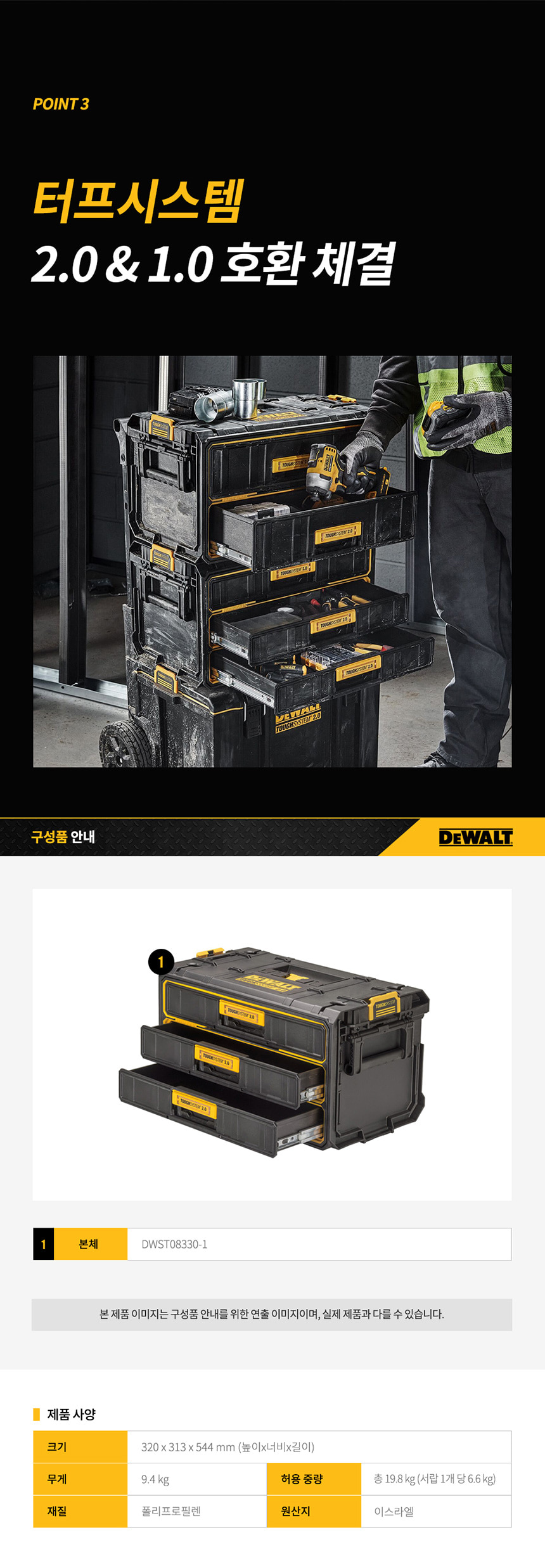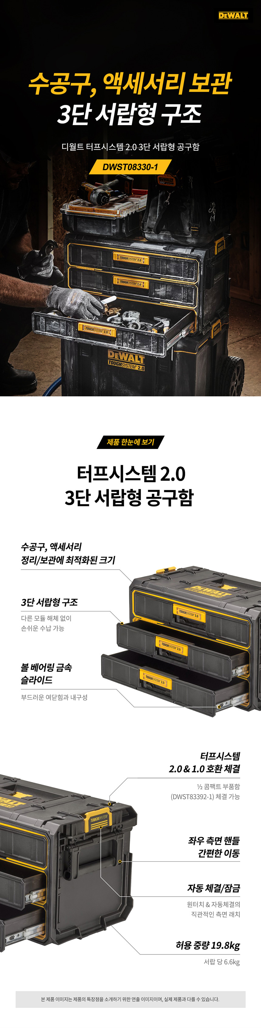 디월트 터프시스템 2.0 DWST08330-1 3단 서랍형 공구함 공구박스 툴박스