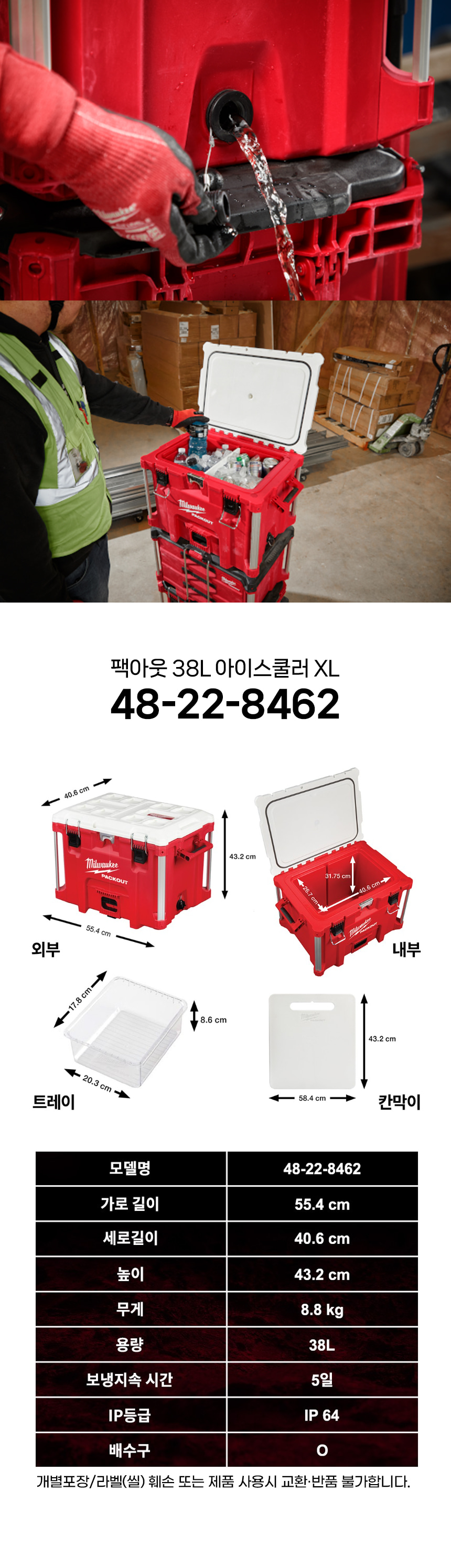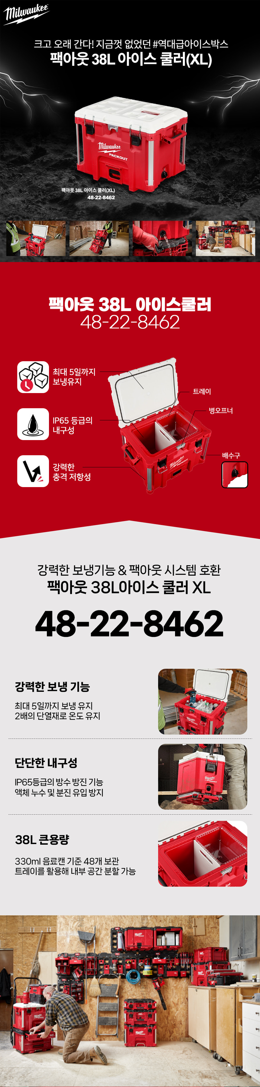 밀워키 팩아웃 38L 아이스쿨러 XL 48-22-8462 아이스박스 쿨러백 캠핑 낚시 보냉 가방 공구함
