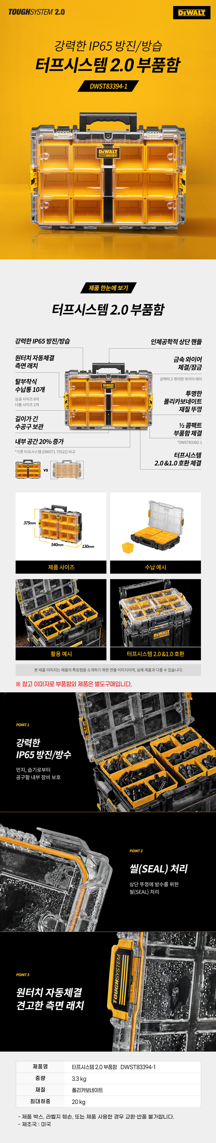 디월트 DWST83394-1 터프시스템 2.0 부품함 IP65 방진 방습 멀티박스 부품통 피스통