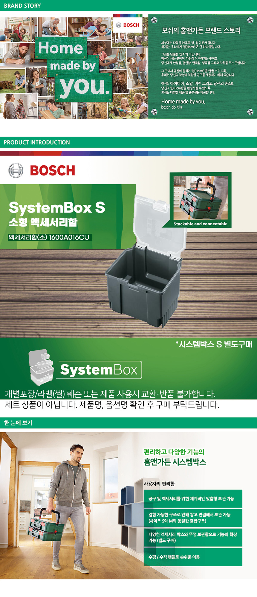 보쉬 시스템박스 S 액세서리함(소) 1600A016CU 공구함 부품함 공구통 다용도 공구 케이스