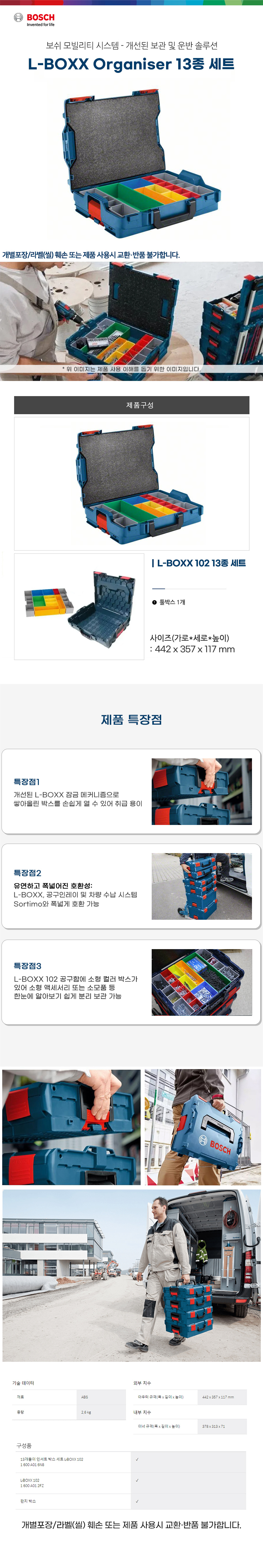 보쉬 L-BOXX organiser 툴박스 1600A016NA 부품함 공구함 공구가방 공구 보관함