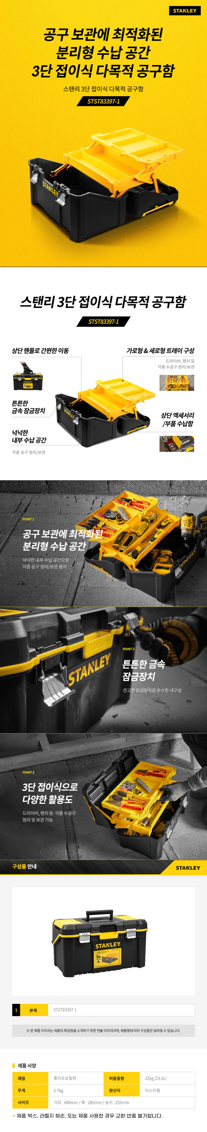 스탠리 STST83397-1 접이식 3단 공구함 공구백 공구가방 수납 이동형 부품함