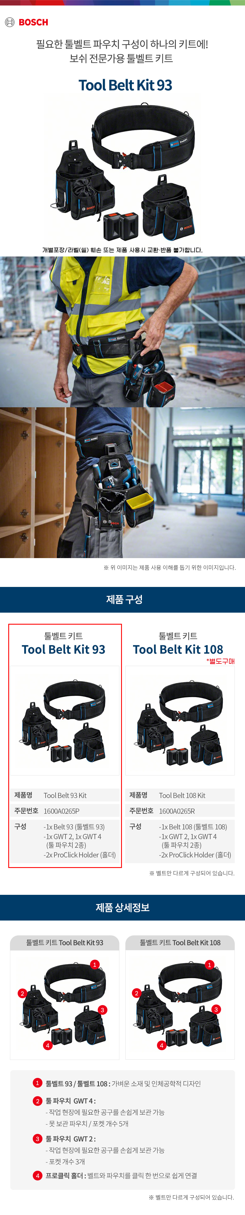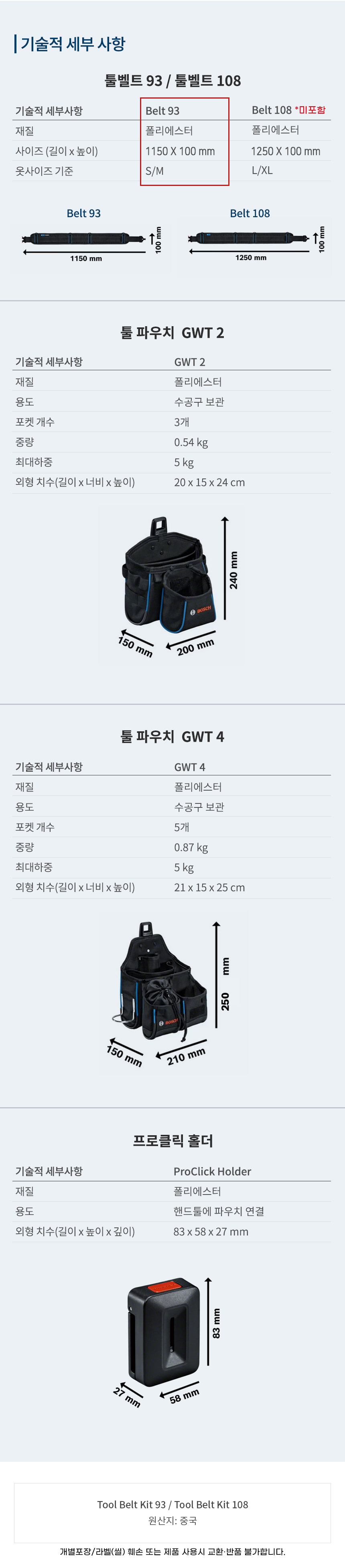 보쉬 tool belt kit 툴 키트 공구집 벨트 파우치 홀더 세트 1600A0265P