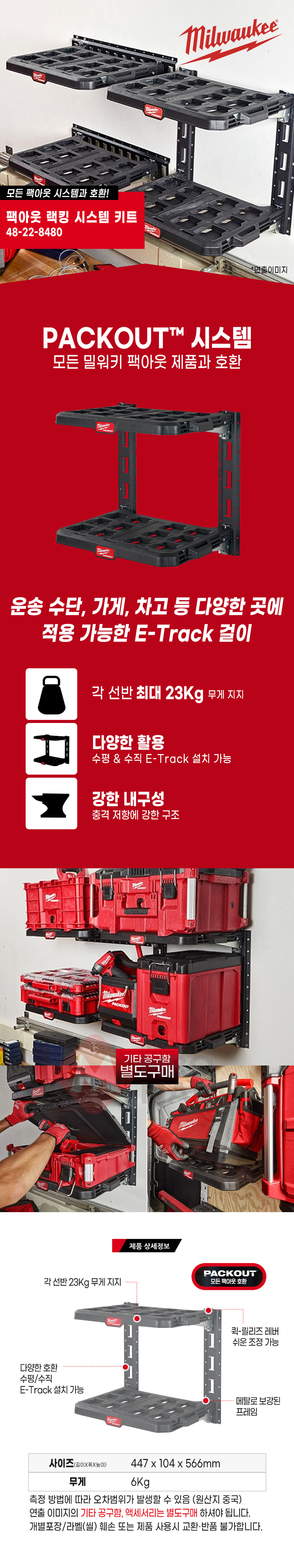 밀워키 PACKOUT 48-22-8480 팩아웃 랙킹 시스템 키트 벽걸이 2단 선반 공구함