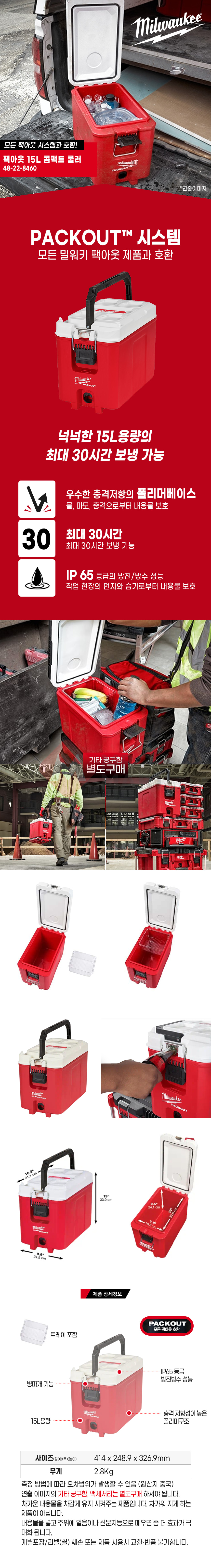 밀워키 PACKOUT 48-22-8460 팩아웃 15L 콤팩트 쿨러 아이스 박스 보냉 가방 공구함 캠핑 현장