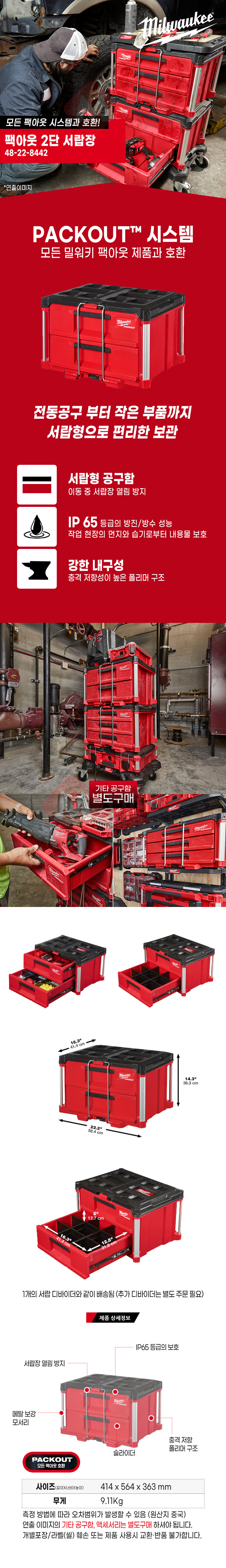 밀워키 PACKOUT 48-22-8442 팩아웃 2단 서랍장 공구함 공구통 공구박스 툴박스 서랍형