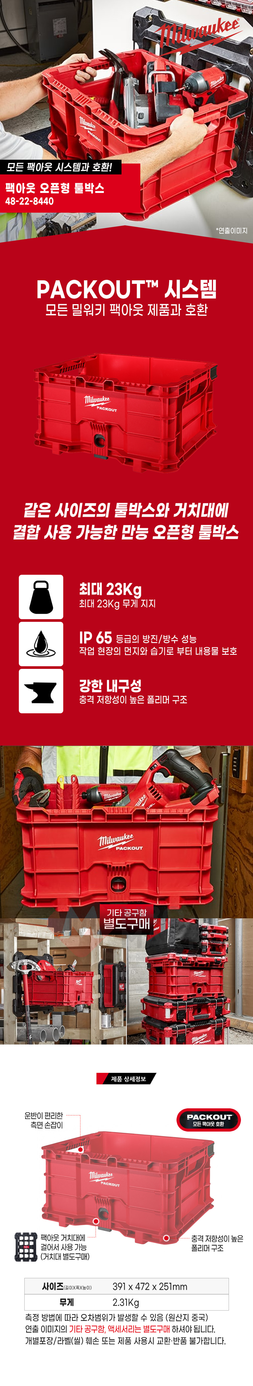 밀워키 PACKOUT 48-22-8440 팩아웃 오픈형 툴박스 공구함 공구박스 공구통