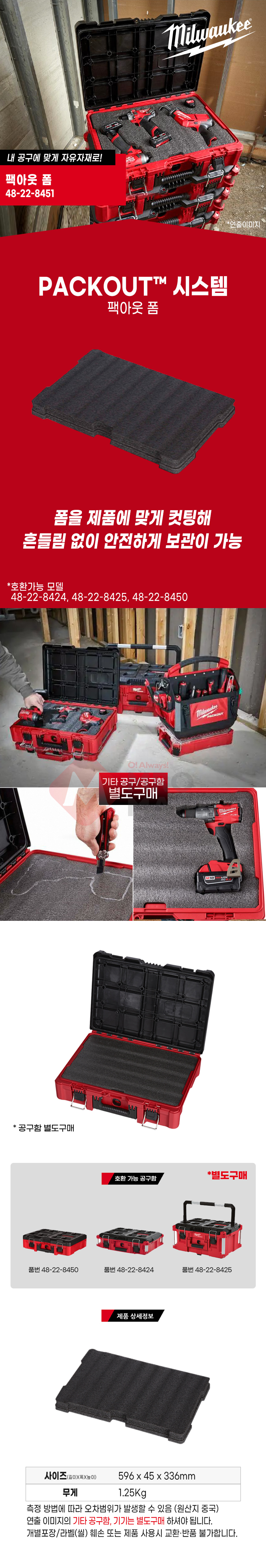 밀워키 PACKOUT 48-22-8451 팩아웃 폼 수납 맞춤 공구함 공구 보관