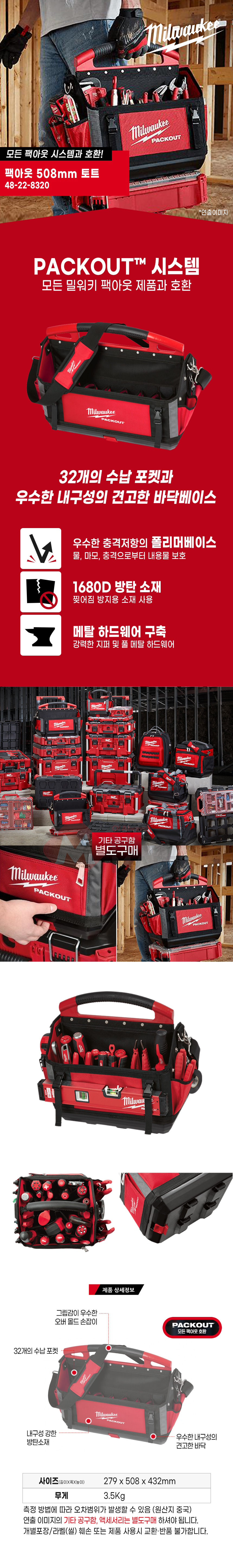밀워키 PACKOUT 48-22-8320 팩아웃 20인치 토트 오픈형 공구가방 공구함 공구 수공구
