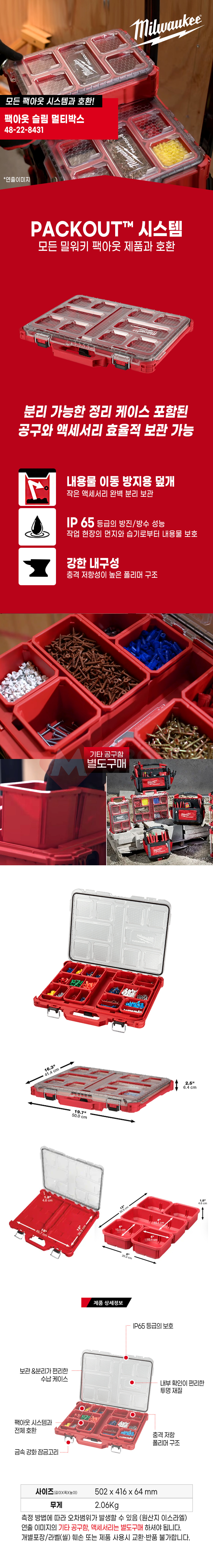 밀워키 PACKOUT 48-22-8431 팩아웃 슬림 멀티박스 공구함 공구박스 공구통 부품함 못통