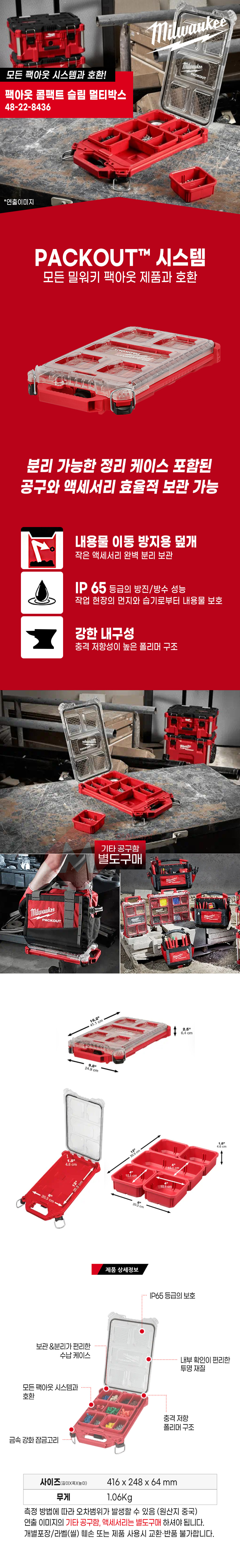 밀워키 PACKOUT 48-22-8436 팩아웃 콤팩트 슬림 멀티박스 공구함 공구박스 공구통 부품함 못통