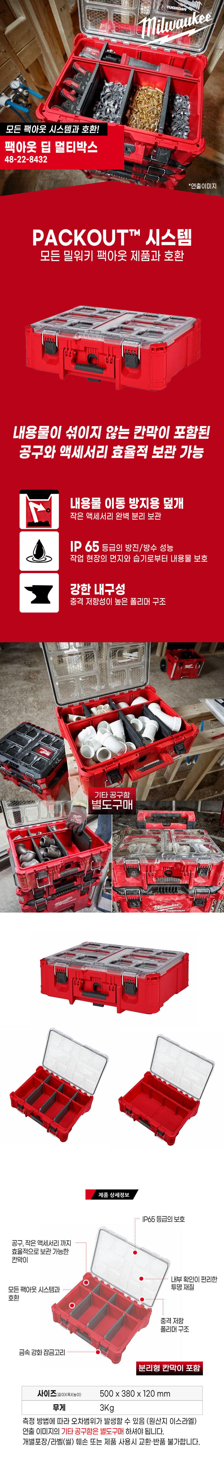 밀워키 PACKOUT 48-22-8432 팩아웃 딥 멀티 박스 툴박스 공구함 공구박스 공구통 부품함 못통