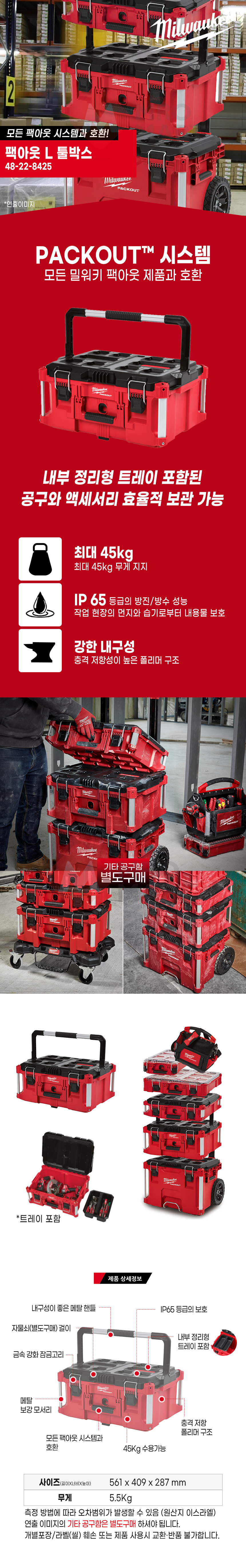 밀워키 PACKOUT 48-22-8425 팩아웃 L 툴박스 공구함 공구박스 공구통 대형 손잡이