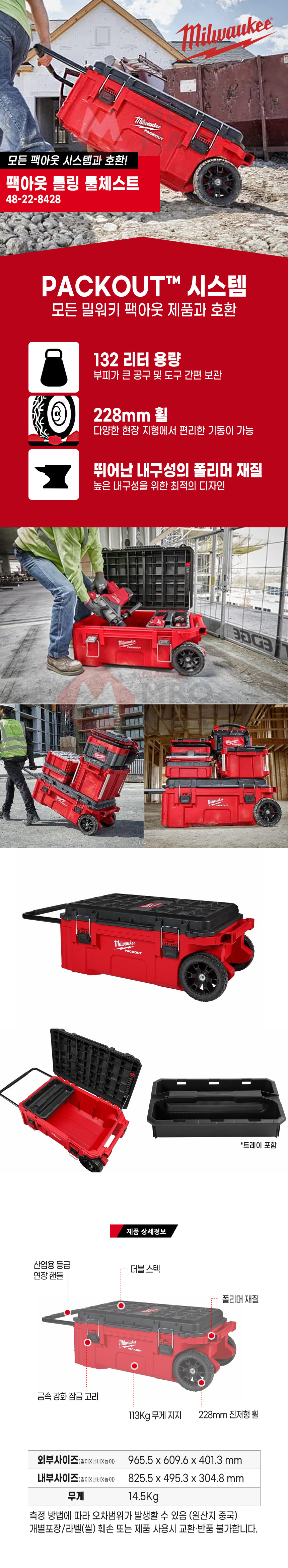 밀워키 PACKOUT 48-22-8428 팩아웃 툴체스트 이동식 공구함 툴박스 대형 수납 보관 바퀴
