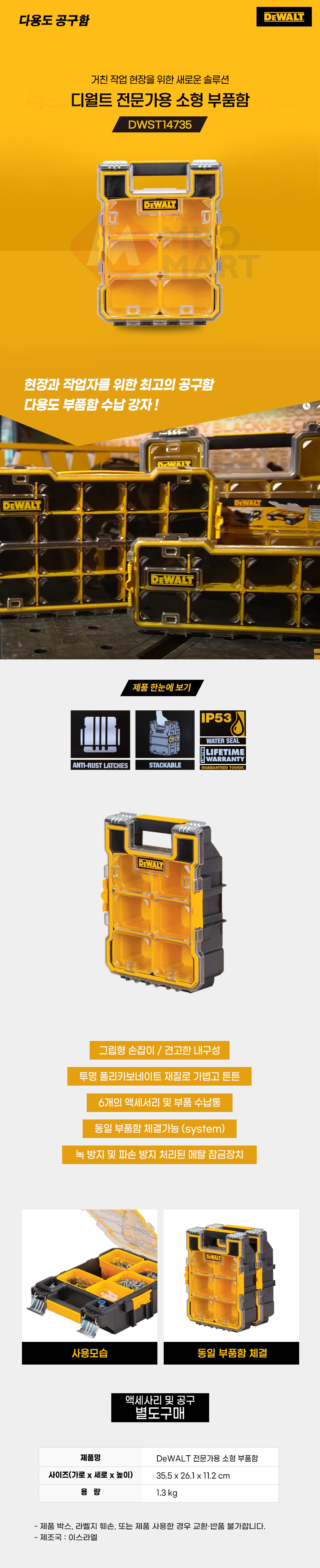 디월트 다용도 공구함 전문가용 소형 부품함 DWST14735
