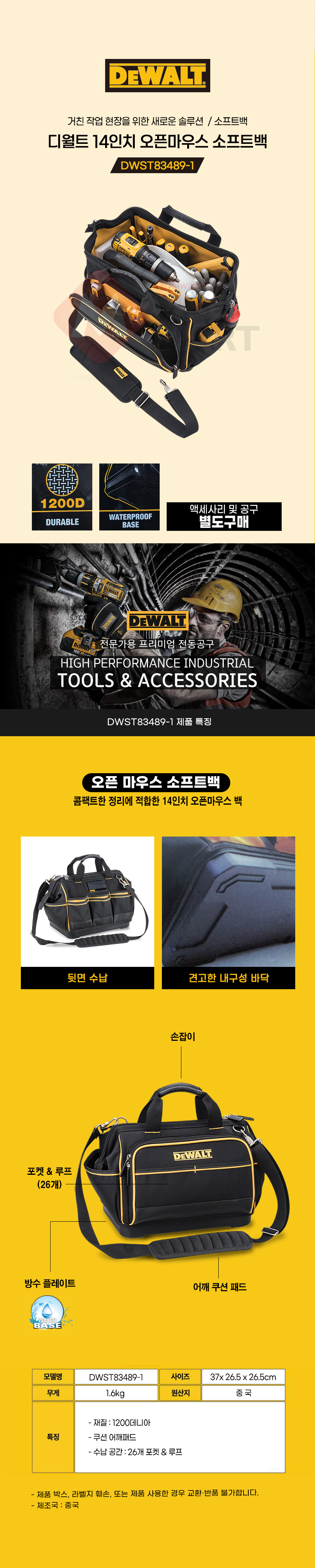 디월트 공구가방 공구함 14인치 오픈 마우스 소프트백 DWST83489-1