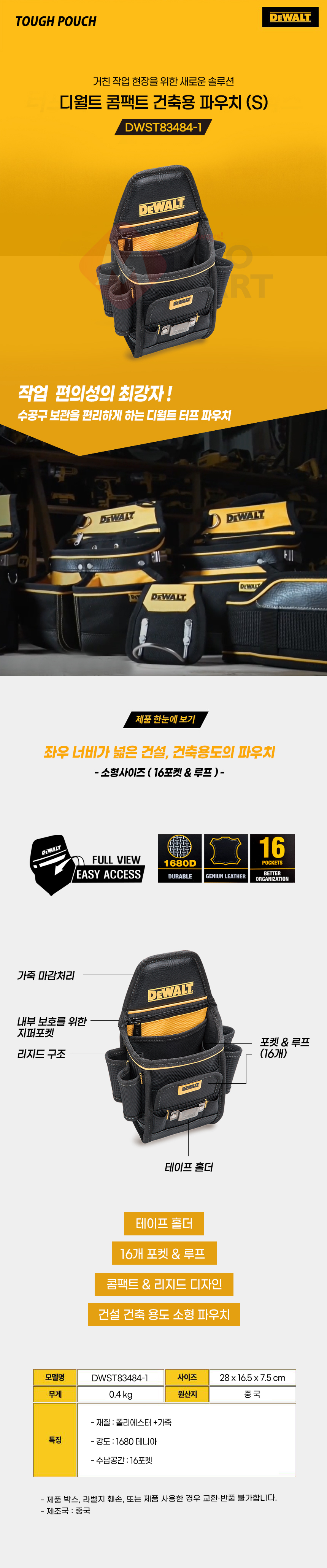디월트 공구집 콤팩트 건축용 파우치 소형 DWST83484-1
