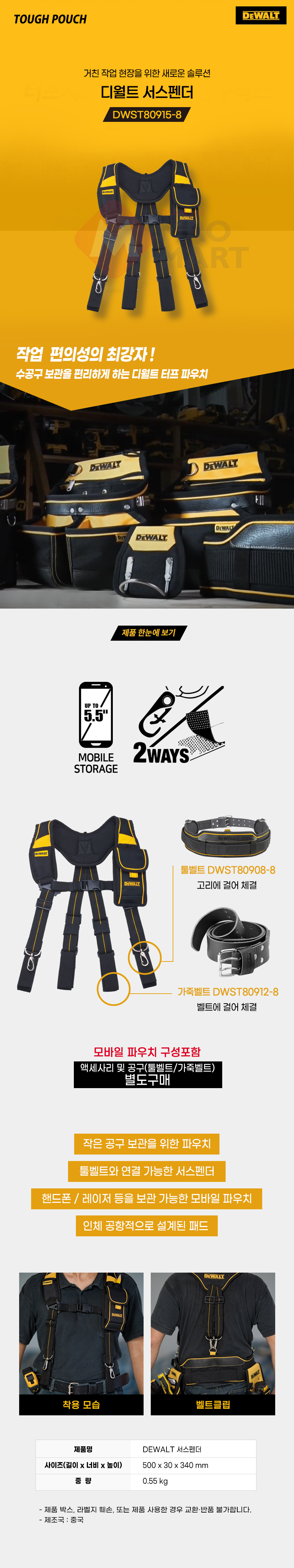 디월트 산업용 작업용 멜빵 공구집 서스펜더 DWST80915-8