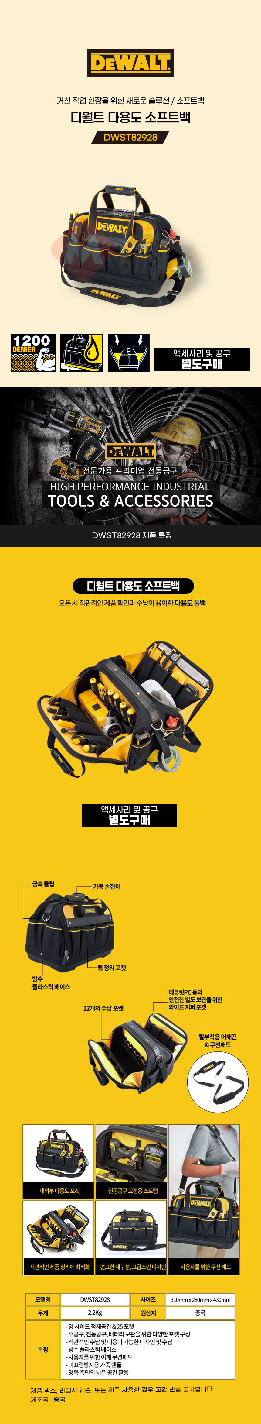 디월트 공구가방 공구함 수납 다용도 소프트백 DWST82928