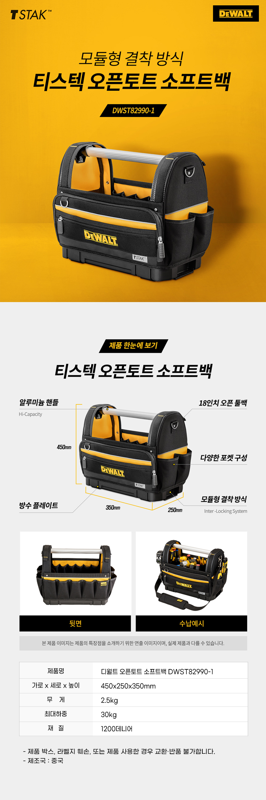 디월트 공구가방 공구함 수납 티스텍 토트백 18인치 DWST82990-1