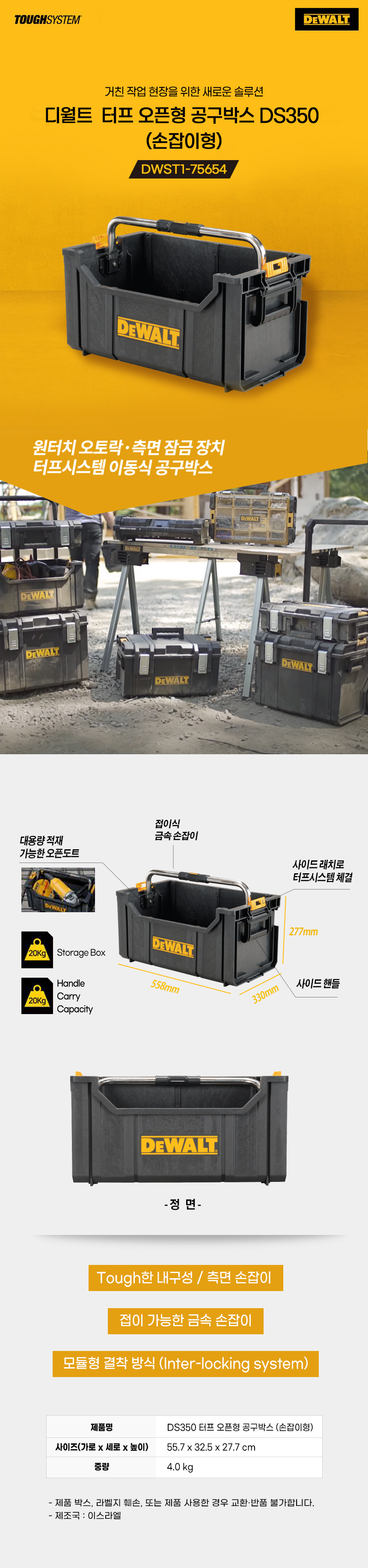 디월트 터프시스템 오픈형 공구박스 손잡이형 DWST1-75654