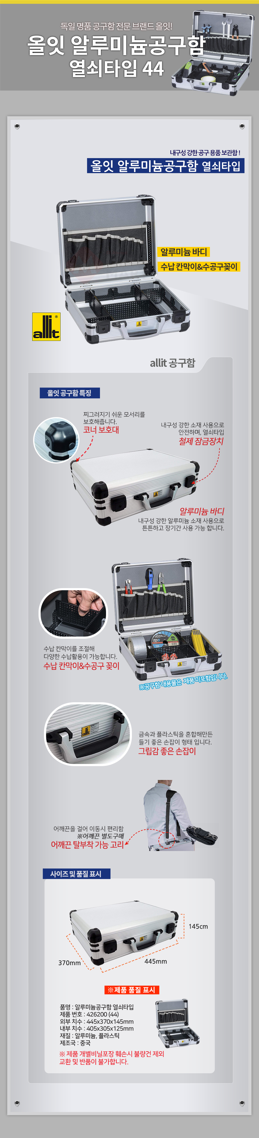 올잇 알루미늄공구함 열쇠타입 44 공구가방 부품함 멀티박스