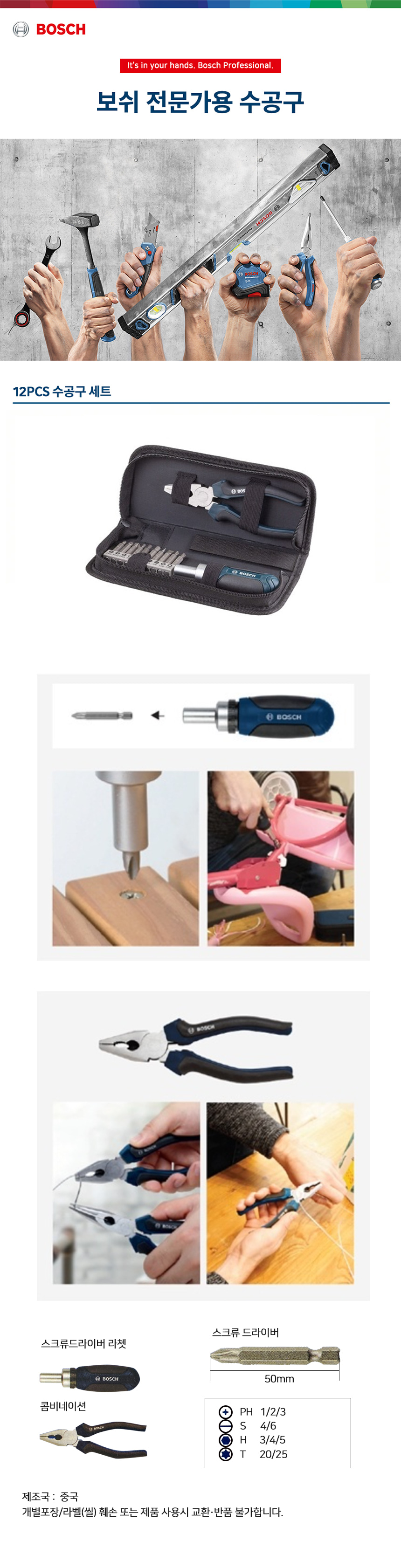 보쉬 12P 핸드툴 세트 2607017520 드라이버 콤비네이션 플라이어