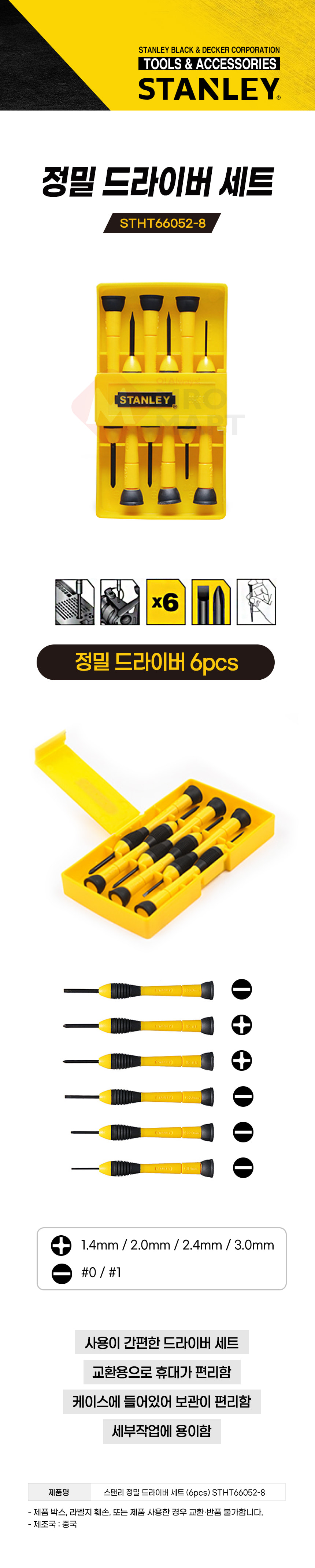 스탠리 STHT66052-8 정밀 드라이버 세트 6pcs 일자 십자 수공구