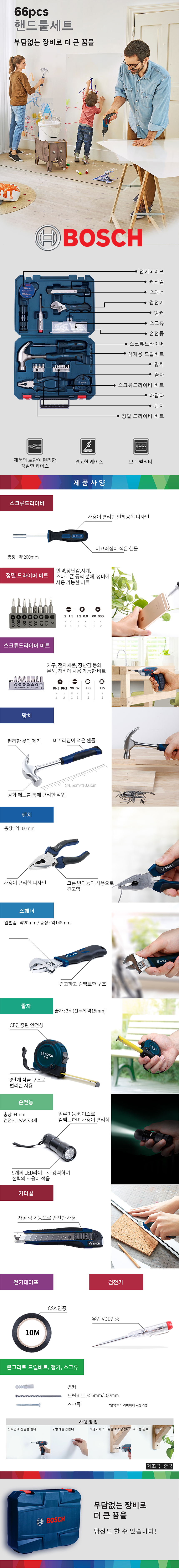보쉬 수공구세트 66pcs 가정용 공구세트 수공구 2607002794