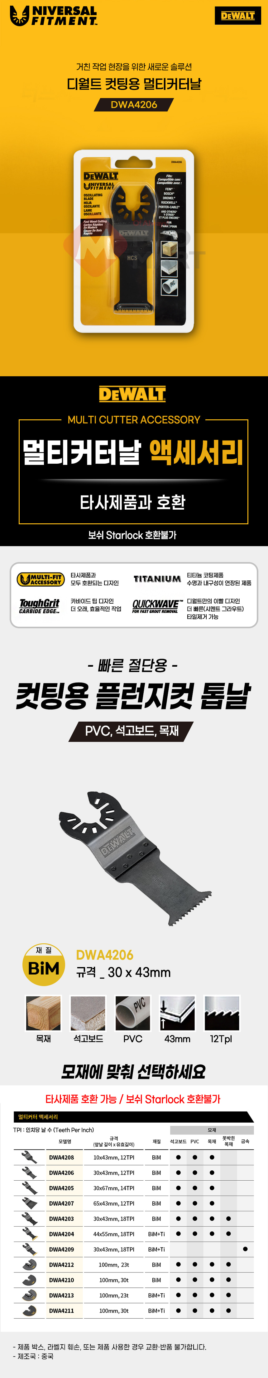 디월트 멀티커터날 컷팅용 플런지컷 석고 PVC 목재용 DWA4206