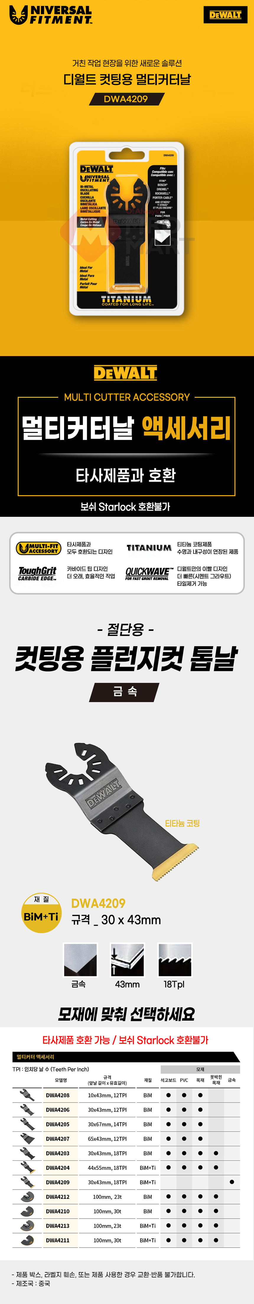 디월트 멀티커터날 컷팅용 플런지컷 티타늄코팅 금속용 DWA4209