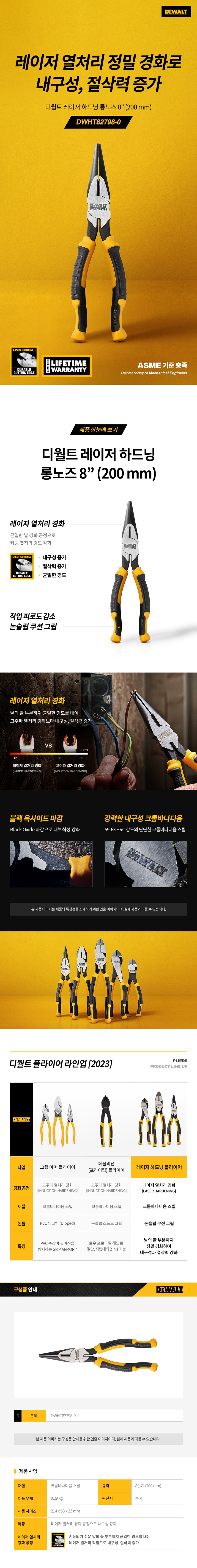 디월트 레이저 하드닝 롱노즈 8인치 200mm DWHT82798-0 수공구 롱노우즈 플라이어