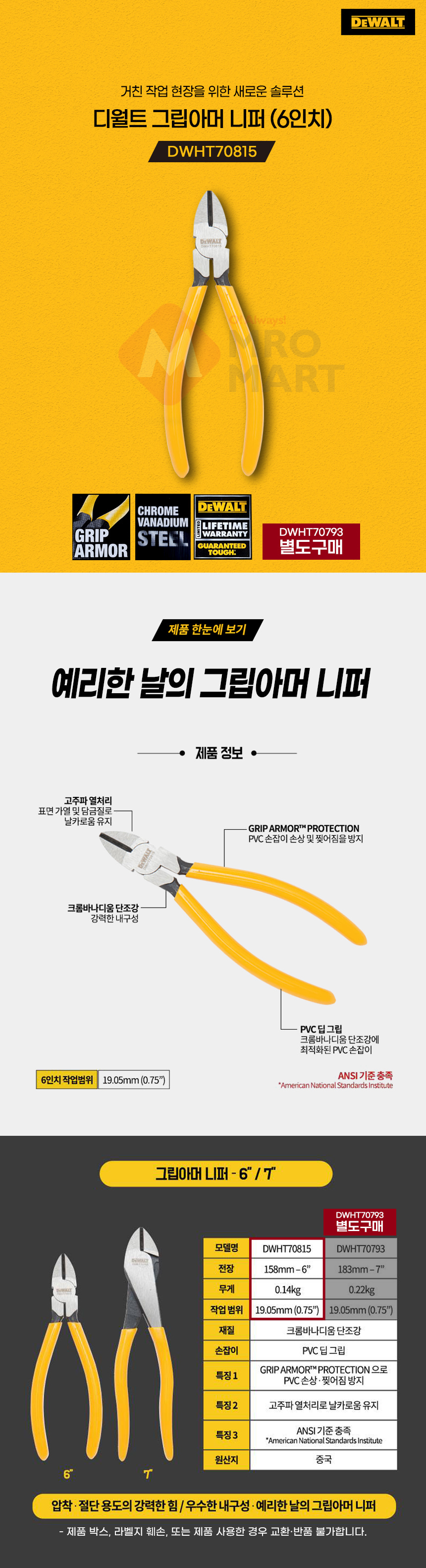 디월트 DWHT70815 그립아머 니퍼 펜치 뺀찌 강력 압착 절단용 6인치 수공구