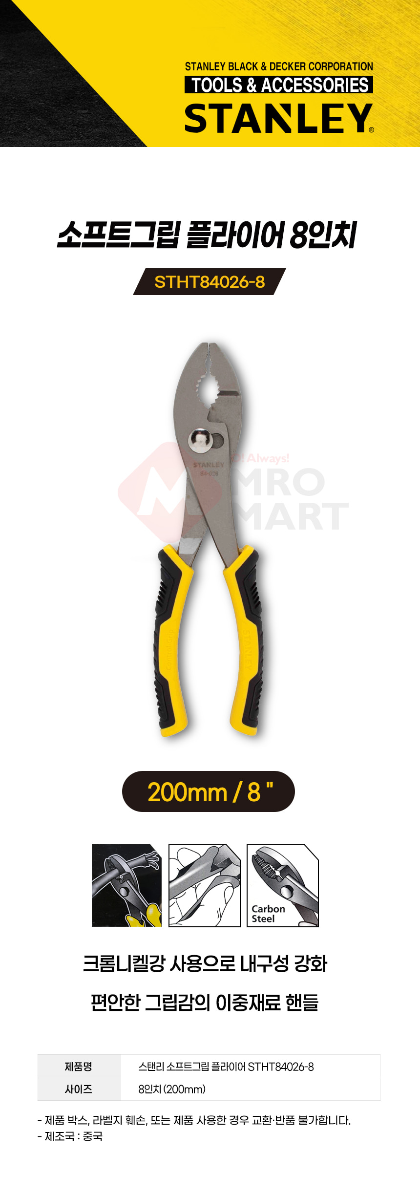 스탠리 STHT84026-8 소프트그립 플라이어 8인치 수공구