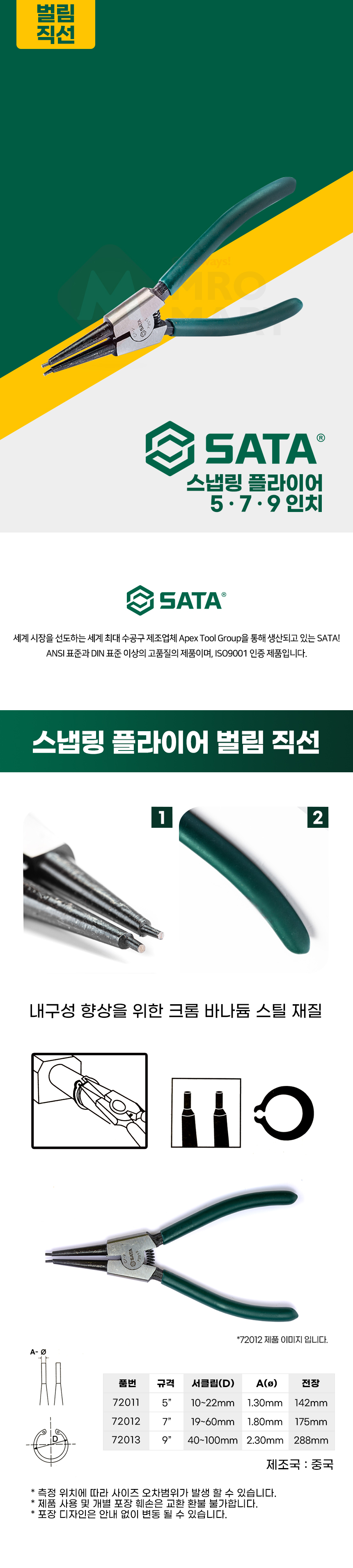 사타 스냅링 플라이어 벌림 직선 5인치 72011 수공구