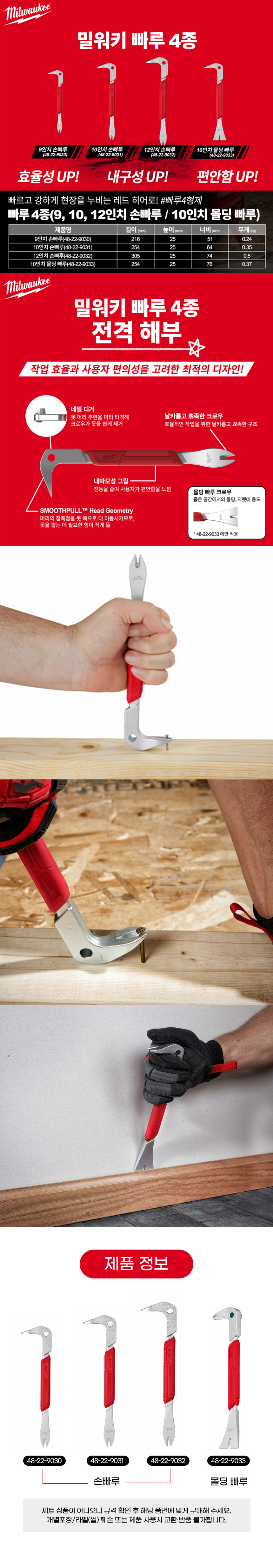 밀워키 9인치 손빠루 48-22-9030 끌 쇠 지렛대 못 제거 간격 벌림