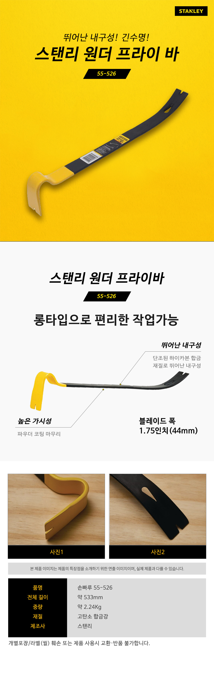 스탠리 55-526 원더 프라이 바 손 빠루 쇠 지렛대 철거 공사