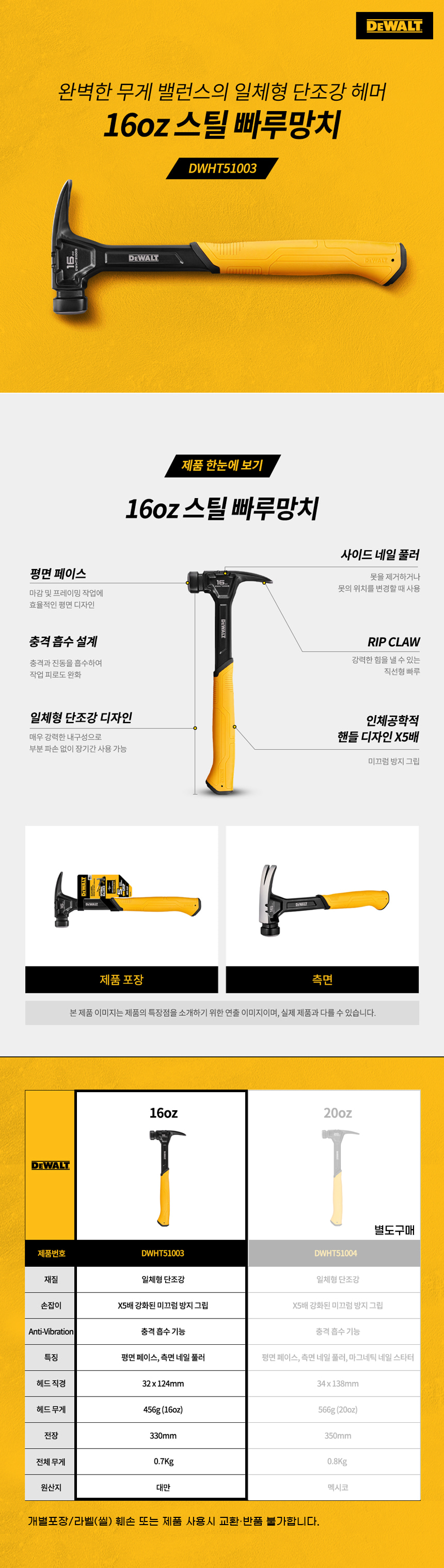 디월트 DWHT51003 스틸 빠루 망치 직선형 330mm 0.7kg