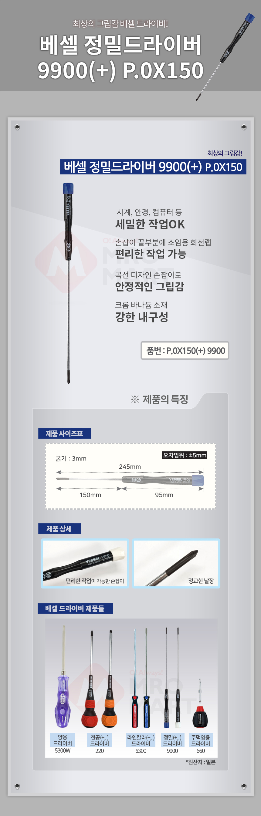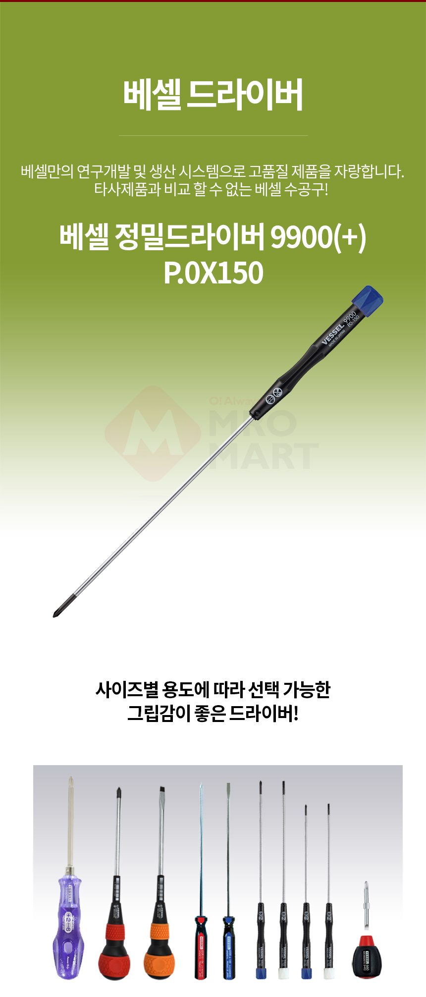 베셀 정밀드라이버 9900(+) 0X150 수공구 십자드라이버
