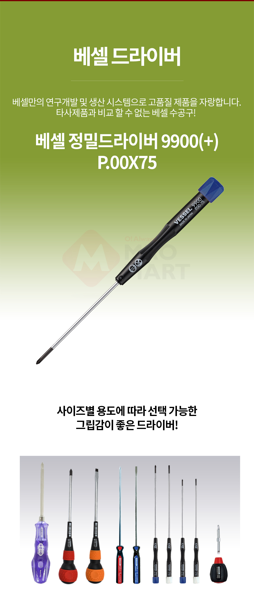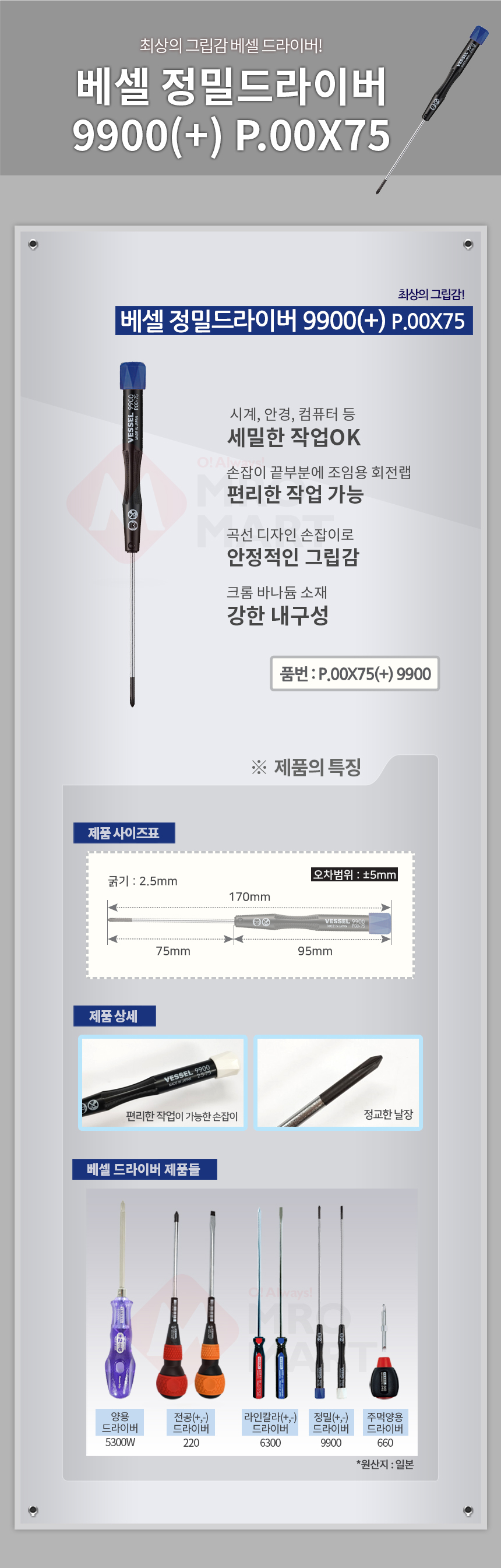베셀 정밀드라이버 9900(+) 00X75 수공구 십자드라이버