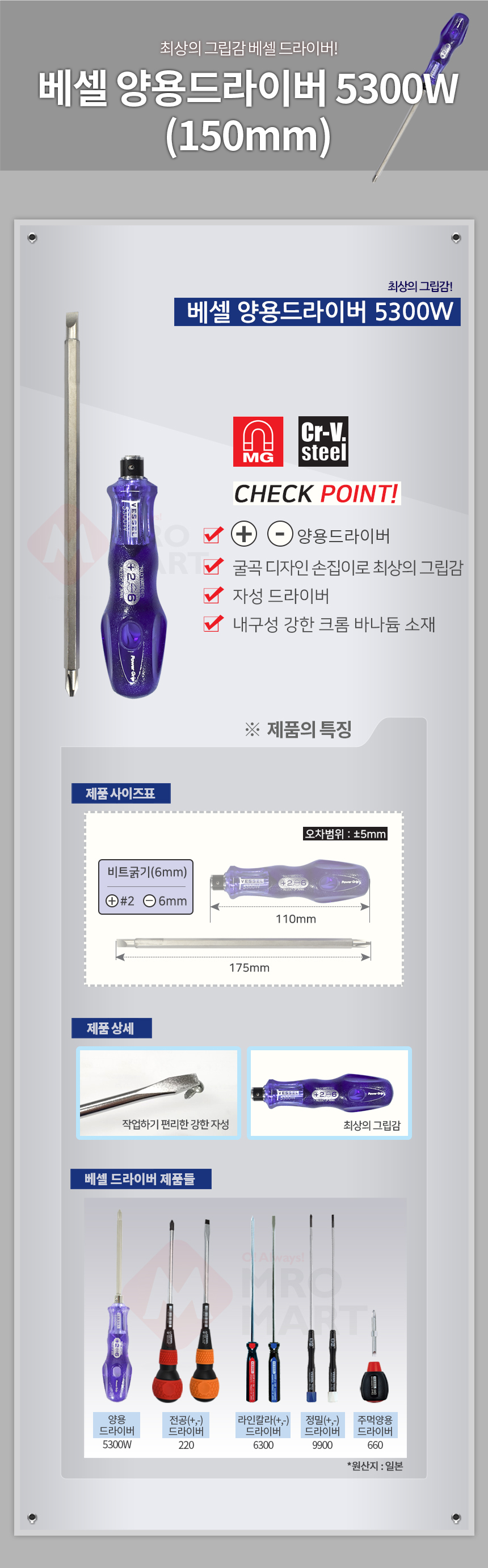 베셀 양용 드라이버 5300W 150mm 자성 드라이버 마그네틱 수공구
