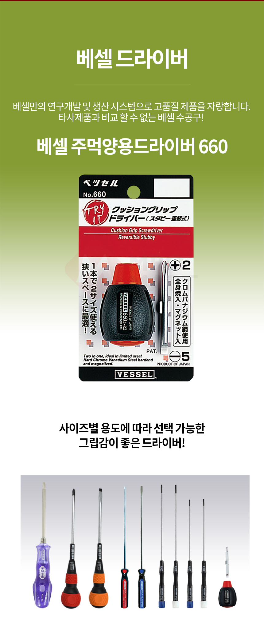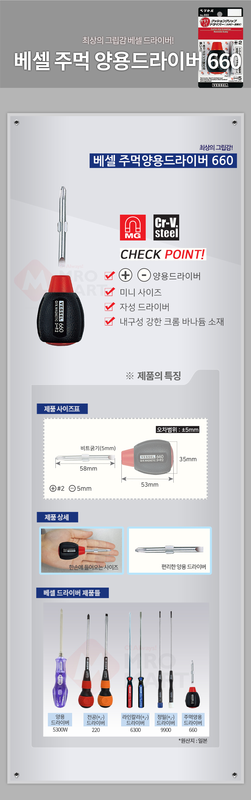 베셀 주먹양용드라이버660 자성 미니드라이버 수공구