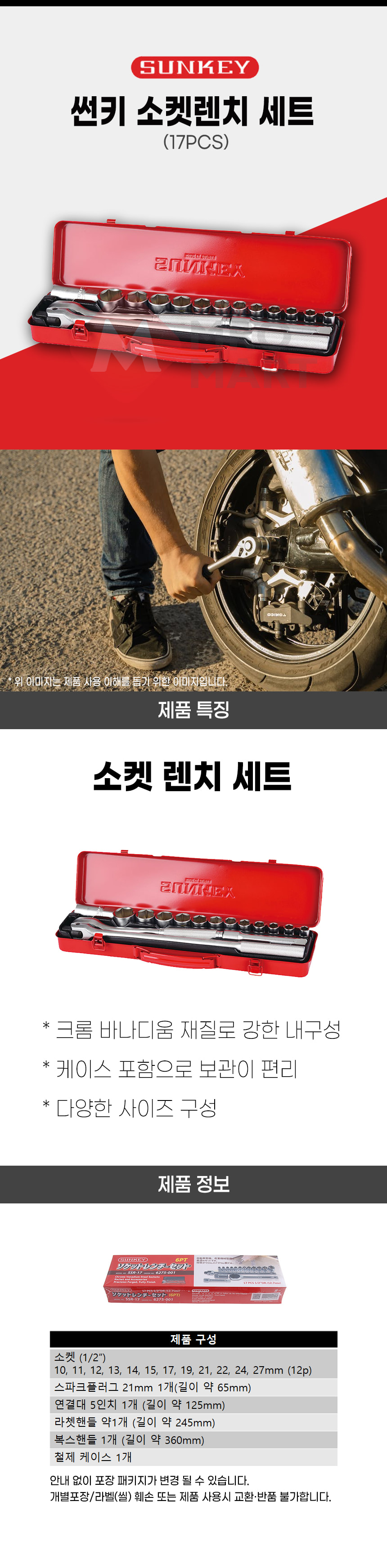썬키 SSR-17 1/2인치 소켓 렌치 세트 17PCS 복스알 깔깔이 자동차 정비