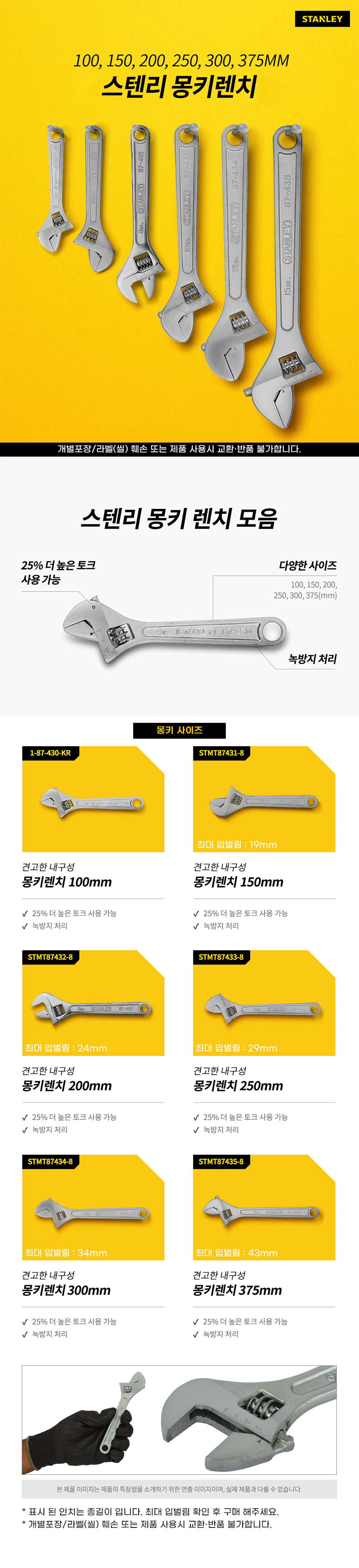 스탠리 몽키 스패너 렌치 수공구 STMT87434-8 12인치