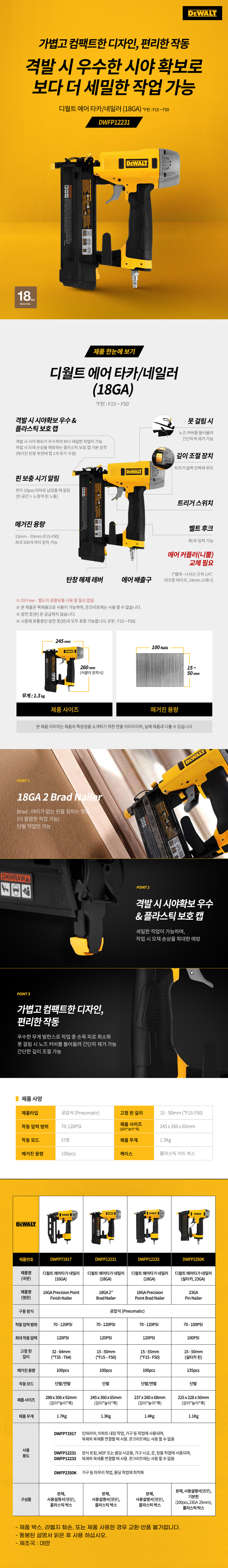 디월트 DWFP12231 에어타카 네일러 타정기 타카총 단발 18GA
