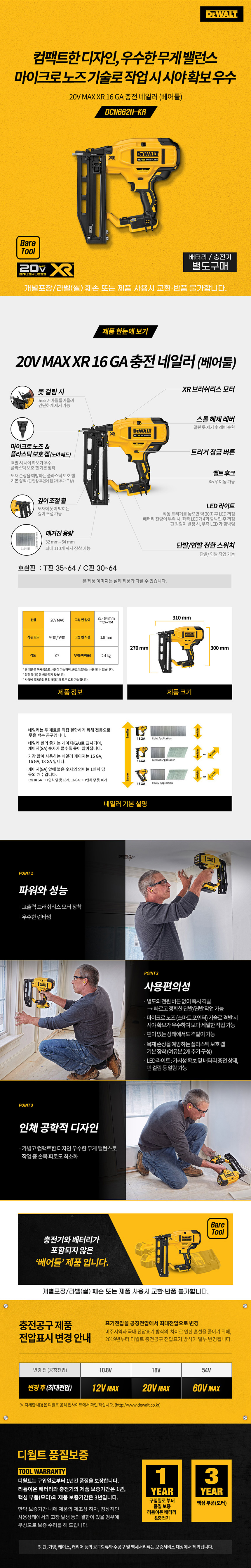 디월트 DCN662N 16GA 충전 네일러 베어툴 20V 18V